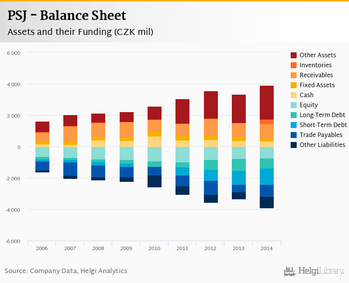 PSJ's total assets reached CZK 3,904 mil at the end of 2014, up 17.5% compared to the previous year.