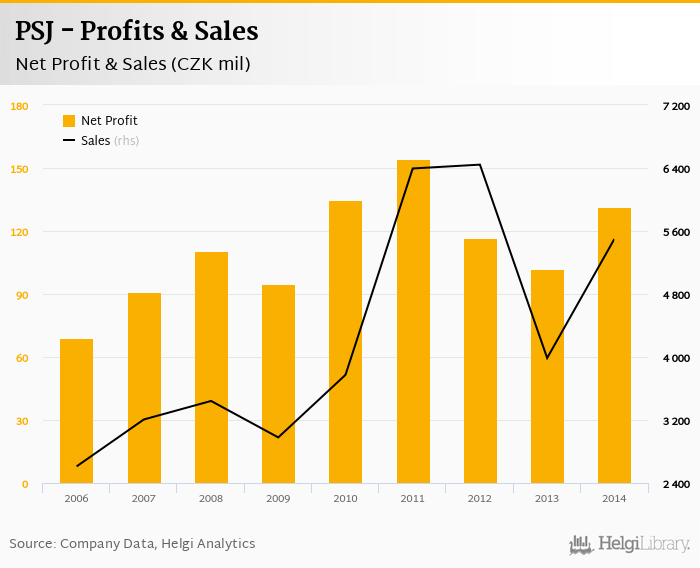 PSJ made a net profit of CZK 131 mil in 2014, up 28.9% compared to the previous year. Total sales reached CZK 5,498 mil, which is up 37.9% when compared to the previous year.