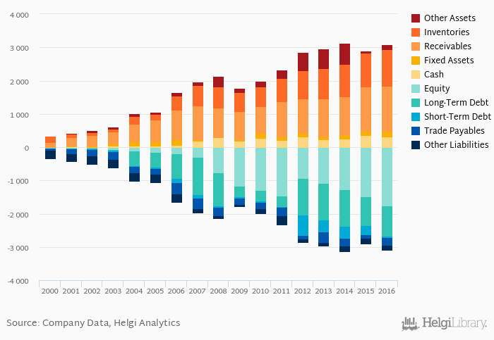 Net debt against equity is up 28.6 pp from five years ago (8.56%). The ratio against EBITDA increased from 0.615x seen in 2011 to 1.59x.