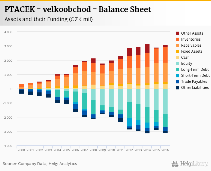 PTACEK - velkoobchod's total assets reached CZK 3,098 mil at the end of 2016, up 6.69% compared to the previous year.