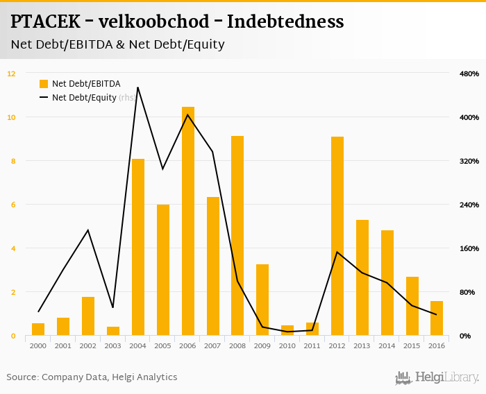 PTACEK - velkoobchod's net debt stood at CZK 650 mil and accounted for 37.2% of equity at the end of 2016. The ratio is down 16.8 pp compared to the previous year.