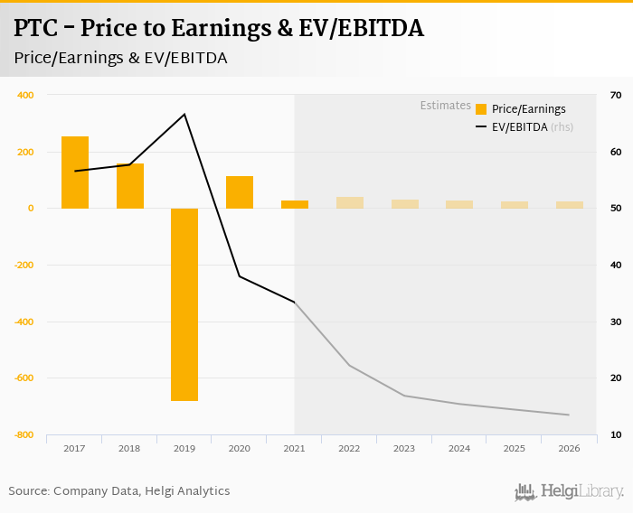 PTC stock traded at USD 122 per share at the end 2021 translating into a market capitalization of USD 14,441 mil.