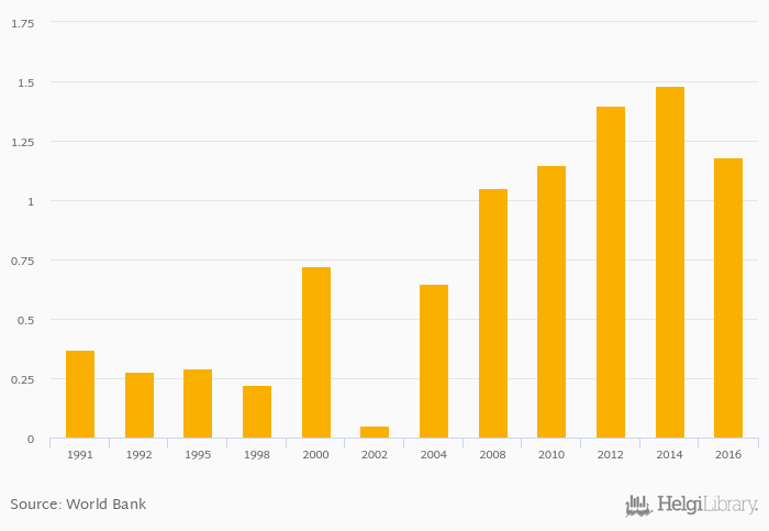 Pump prices for diesel fuel rose 0% to USD 1.18 per litre in Zimbabwe in 2016, according to World Bank.