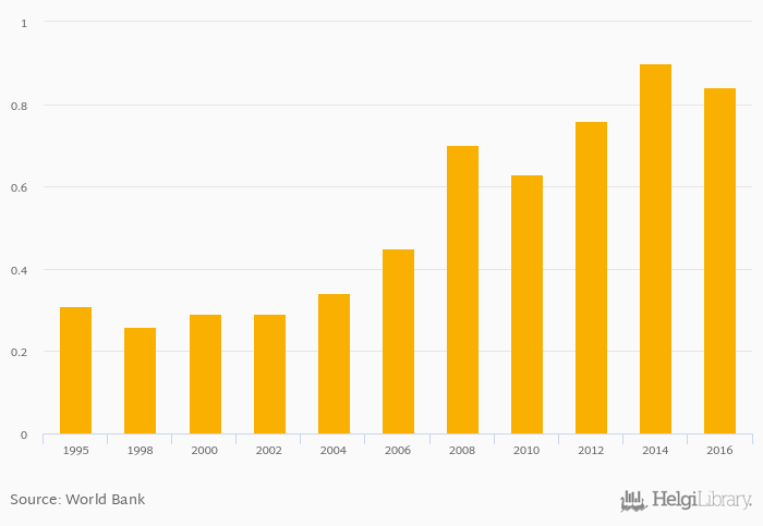 Pump prices for diesel fuel rose 0% to USD 0.840 per litre in Bangladesh in 2016, according to World Bank.