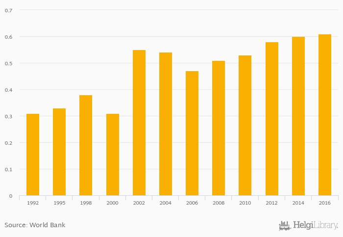 Pump prices for gasoline fuel rose 0% to USD 0.610 per litre in Ecuador in 2016, according to World Bank.