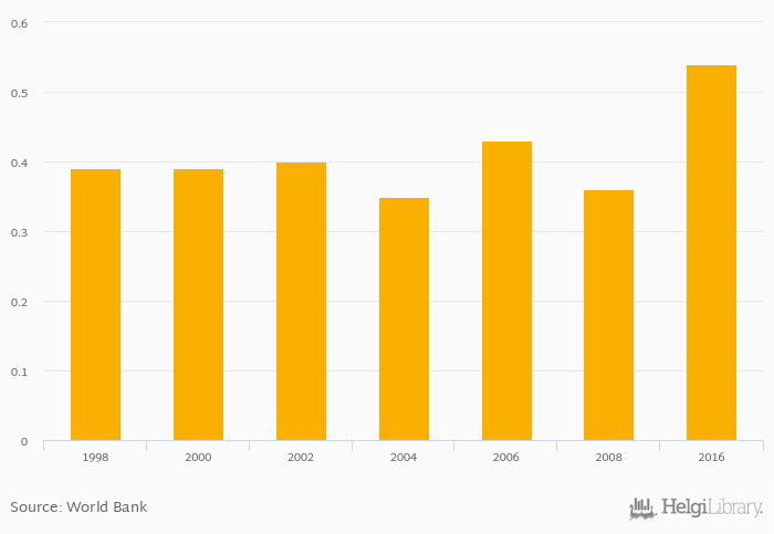 Pump prices for gasoline fuel rose 0% to USD 0.540 per litre in Trinidad and Tobago in 2016, according to World Bank.