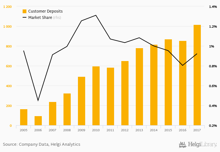 Punjab & Sind Bank's customer deposits reached INR 1,017 bil in 2017, up 18.9% compared to the previous year.