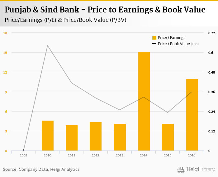 Punjab & Sind Bank stock traded at INR 55.0 per share at the end 2016 implying a market capitalization of USD 324 mil.