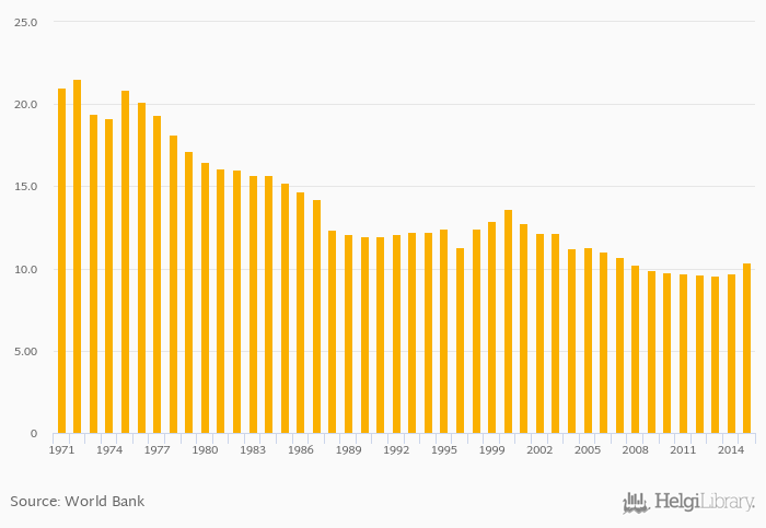 | Saudi Arabia | persons | ... | ... | ... | ... | ... | ... | ... | ... | ... | ... | ... | ... | ... | 10.8 | 11.0 | 10.3 | 10.5 | ||||