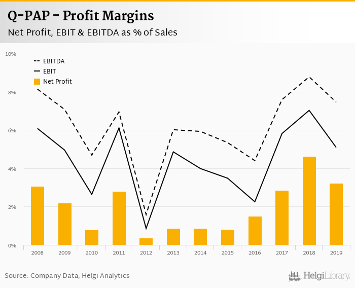 Q-PAP made a net profit of CZK 0.929 mil with revenues of CZK 28.7 mil in 2019, down by 35.3% and down by 7.71%, respectively, compared to the previous year.