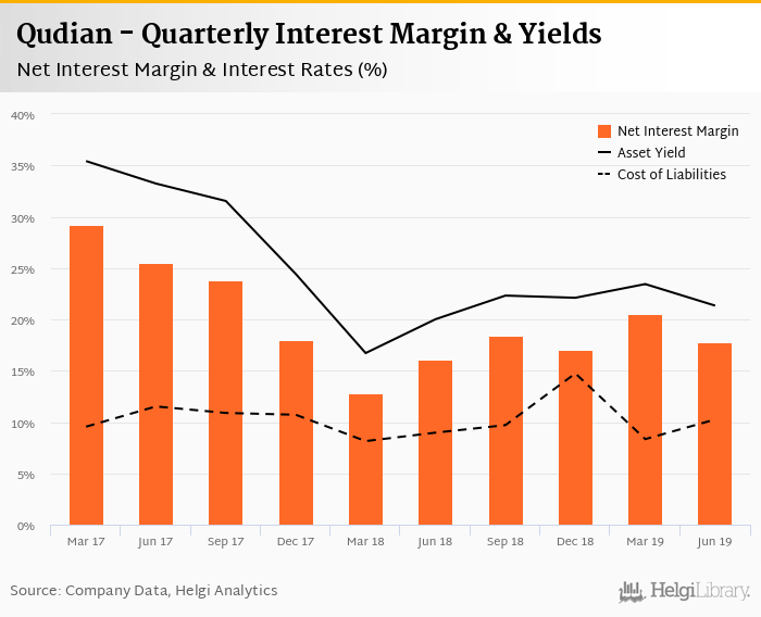 Qudian's net interest margin amounted to 17.8% in the second quarter of 2019, down from 20.6% when compared to the previous quarter.