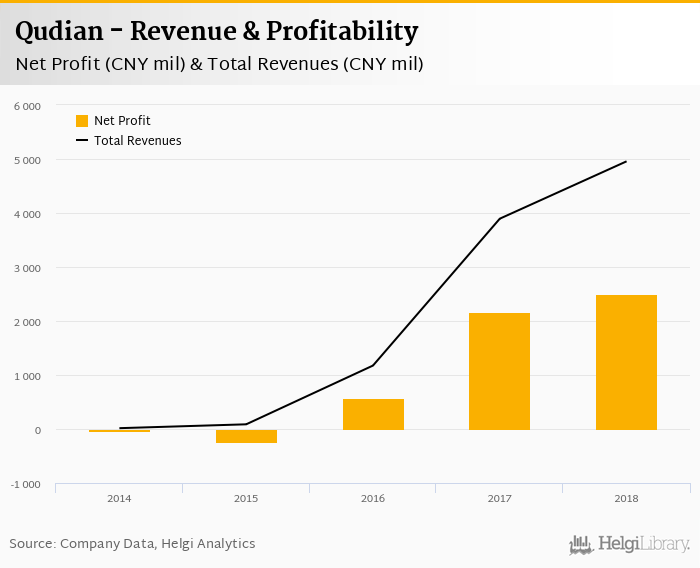 Qudian made a net profit of CNY 2,491 mil under revenues of CNY 4,957 mil in 2018, up 15.1% and 27.3% respectively compared to the previous year.
