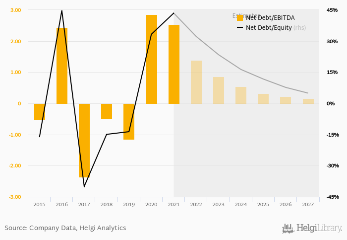 Historically, the firm’s net debt to equity reached a high of 44.7% in 2016 and a low of -40.0% in 2017 between 2015 and 2021. The average for the last five years was 1.63%.