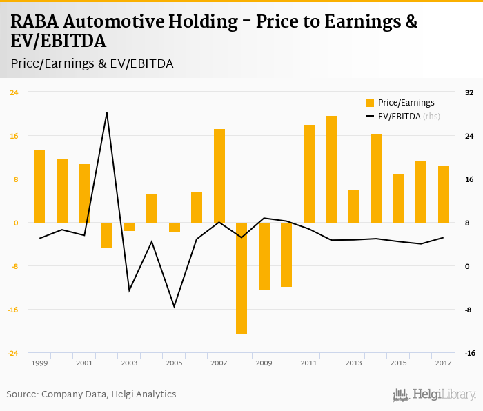 RABA Automotive Holding stock traded at HUF 1,233 per share at the end 2017 translating into a market capitalization of USD 63.6 mil.