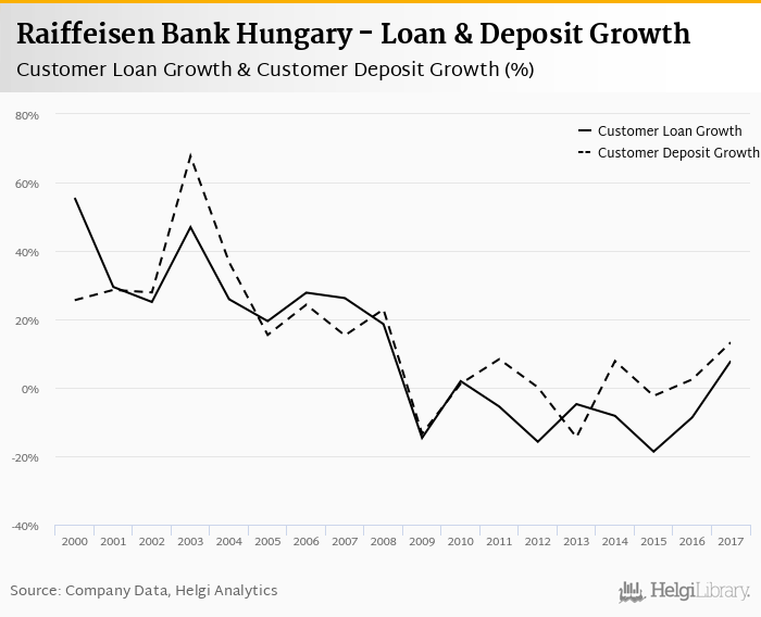At the end of 2017, Raiffeisen Bank Hungary's loans accounted for 60.0% of total deposits and 41.3% of total assets.
