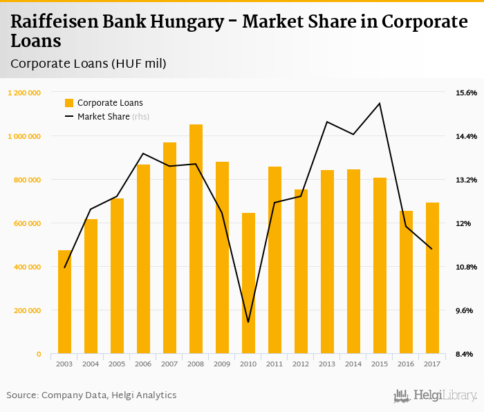 Raiffeisen Bank Hungary's corporate loans reached HUF 695,643 mil in 2017, up 6.05% compared to the previous year.