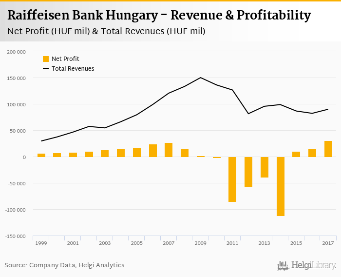 Raiffeisen Bank Hungary made a net profit of HUF 30,508 mil under revenues of HUF 89,813 mil in 2017, up 103% and 9.48% respectively compared to the previous year.