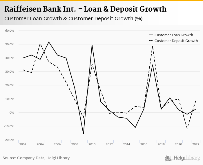 At the end of 2022, Raiffeisen Bank Int.'s loans accounted for 82.5% of total deposits and 49.9% of total assets.