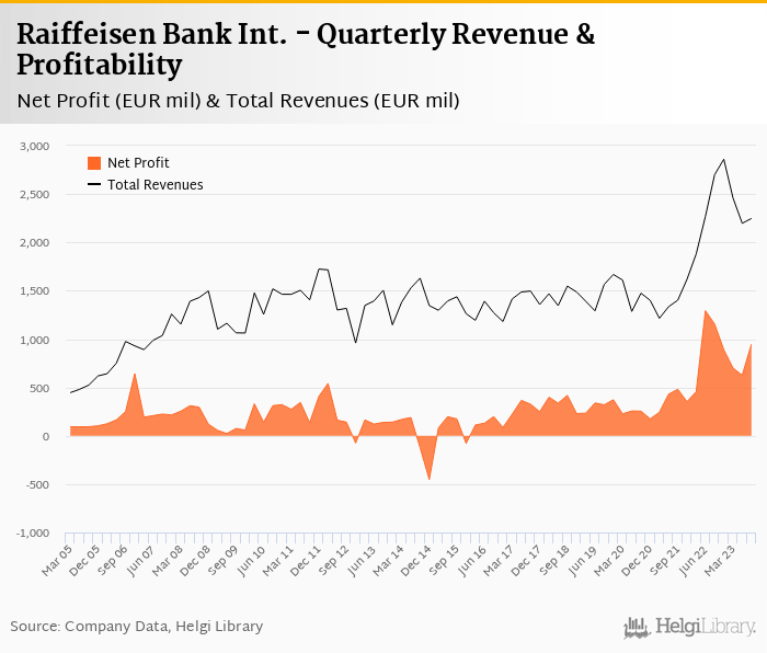 Raiffeisen Bank Int. made a net profit of EUR 947 mil under revenues of EUR 2,247 mil in the third quarter of 2023, down 18% and 16.8% respectively when compared to the same period last year.
