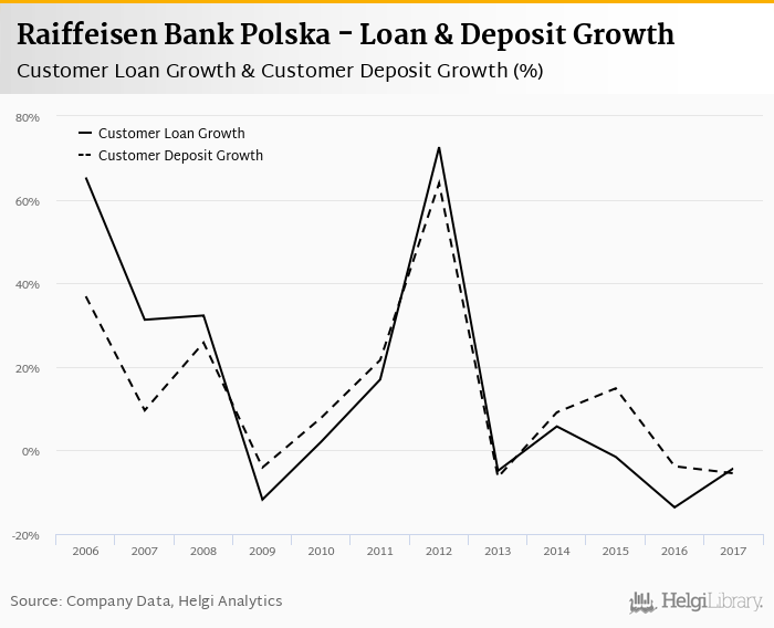 At the end of 2017, Raiffeisen Bank Polska's loans accounted for 94.4% of total deposits and 66.2% of total assets.