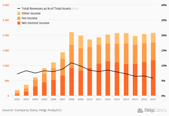 Bank's total revenues accounted for 5.78% total assets in 2017, down from 6.49% a year earlier.