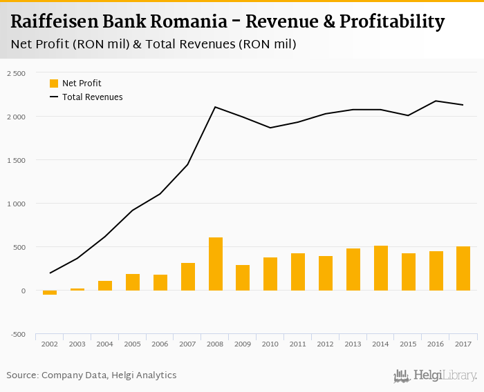 Raiffeisen Bank Romania made a net profit of RON 510 mil under revenues of RON 2,127 mil in 2017, up 13.5% and -2.11% respectively compared to the previous year.