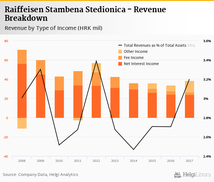 Raiffeisen Stambena Stedionica generated total banking revenues of HRK 38.3 mil in 2017, up 14.3% compared to the previous year.
