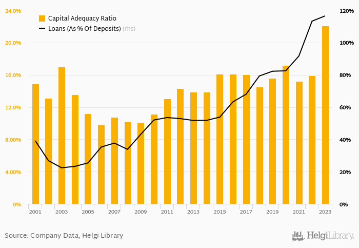 Bank's loan to deposit ratio reached 117% at the end of 2023, up from 113% when compared to the previous year. Some 10 years ago, loan to deposit ratio of the bank amounted to 51.7%.