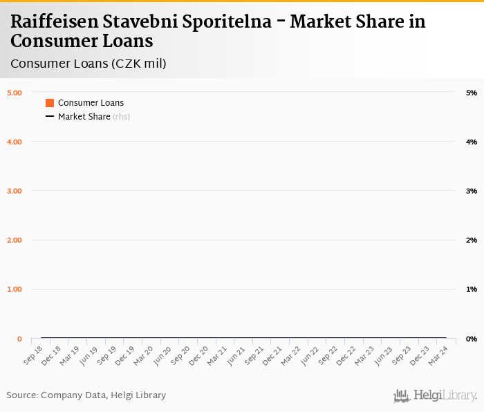 Raiffeisen Stavebni Sporitelna's consumer loans reached CZK 0 mil in 2024-03-31, down 0% compared to the previous year.