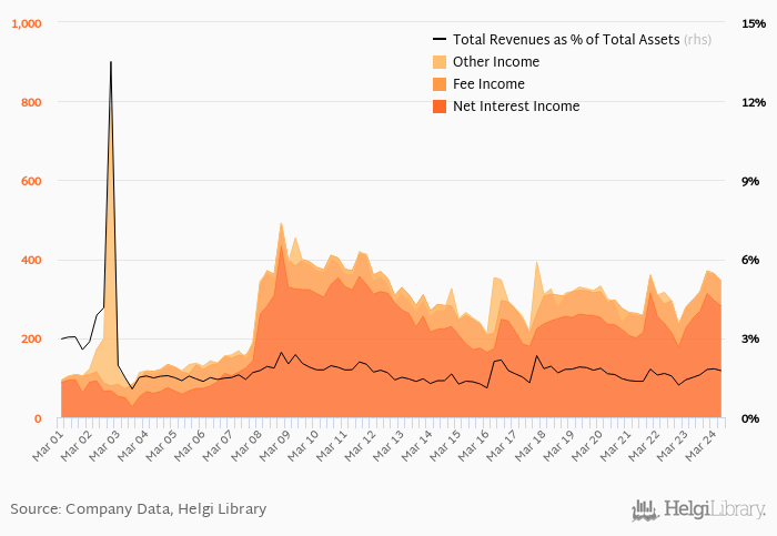 Bank's total revenues accounted for 1.77% total assets in the second quarter of 2024, up from 1.51% a year earlier.