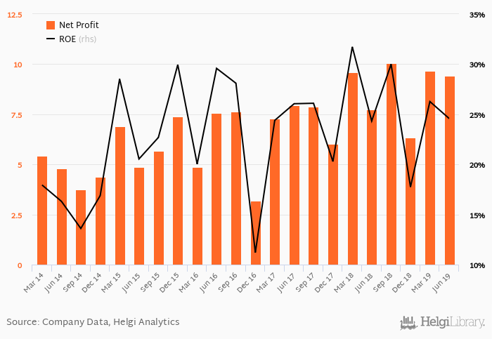 The bank generated its shareholders an average return on equity of 23.6% in the last five years with maximum at 31.7% and minimum at 11.2%.