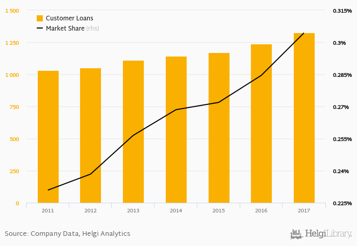 Raiffeisenlandesbank Burgenland accounted for 0.304% of all customer loans issued in Austria at the end of 2017. Historically, the bank’s market share in customer loans reached an all time high of 0.304% in 2017 and an all time low of 0.231% in 2011.