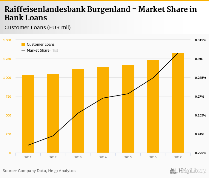 Raiffeisenlandesbank Burgenland's customer loans reached EUR 1,324 mil in 2017, up 6.98% compared to the previous year.