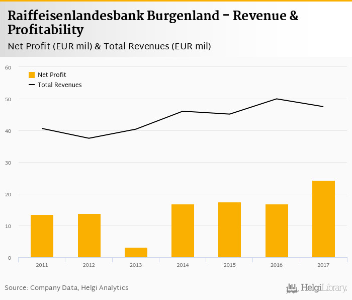 Raiffeisenlandesbank Burgenland made a net profit of EUR 24.3 mil under revenues of EUR 47.5 mil in 2017, up 44.6% and -4.93% respectively compared to the previous year.