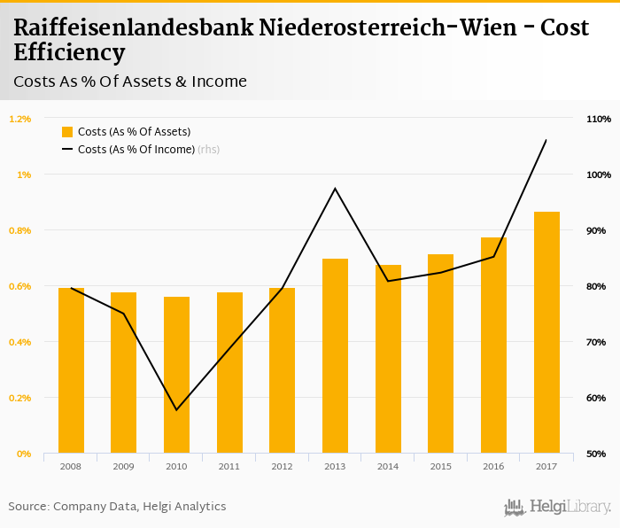 Raiffeisenlandesbank Niederosterreich-Wien's cost to income ratio reached 106% in 2017, up from 85.1% compared to the previous year.