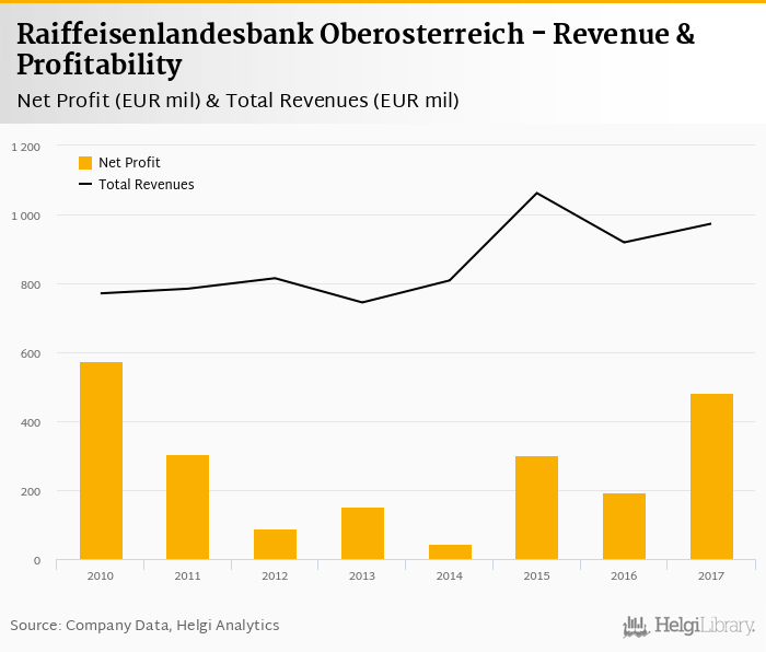 Raiffeisenlandesbank Oberosterreich made a net profit of EUR 484 mil under revenues of EUR 973 mil in 2017, up 151% and 5.93% respectively compared to the previous year.