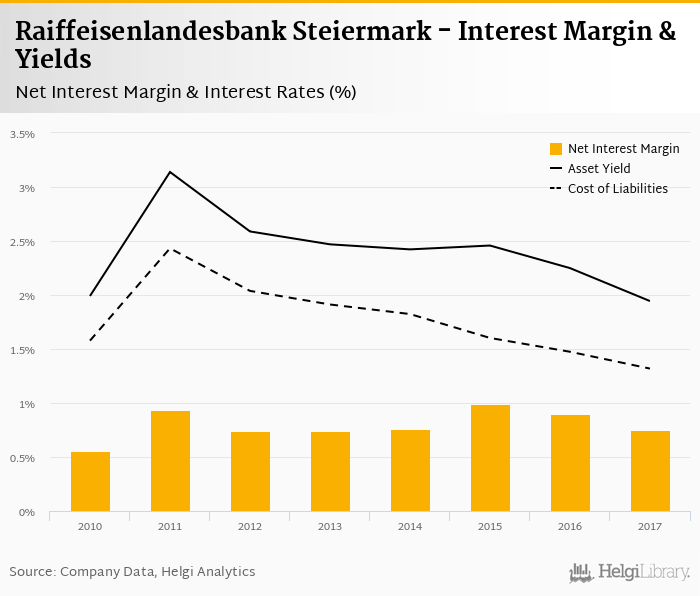 Raiffeisenlandesbank Steiermark's net interest margin amounted to 0.748% in 2017, down from 0.902% compared to the previous year.