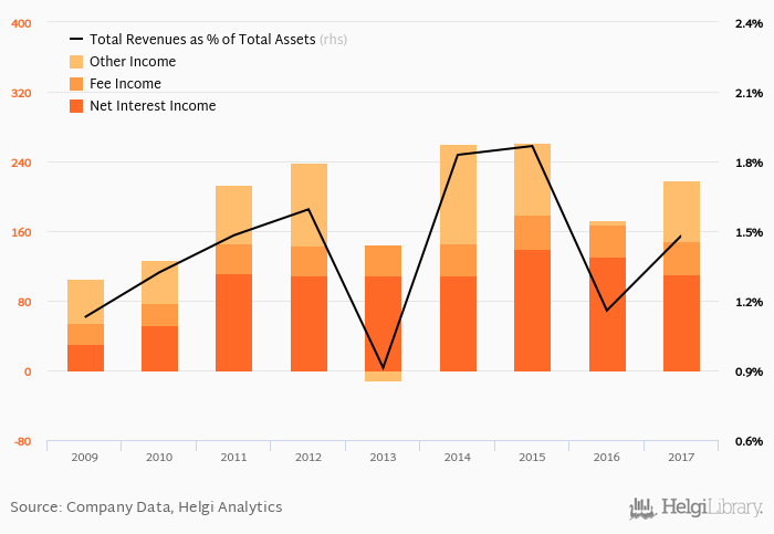 Bank's total revenues accounted for 1.48% total assets in 2017, up from 1.16% a year earlier.