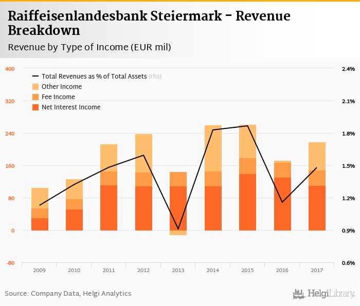 Raiffeisenlandesbank Steiermark generated total banking revenues of EUR 218 mil in 2017, up 25.8% compared to the previous year.