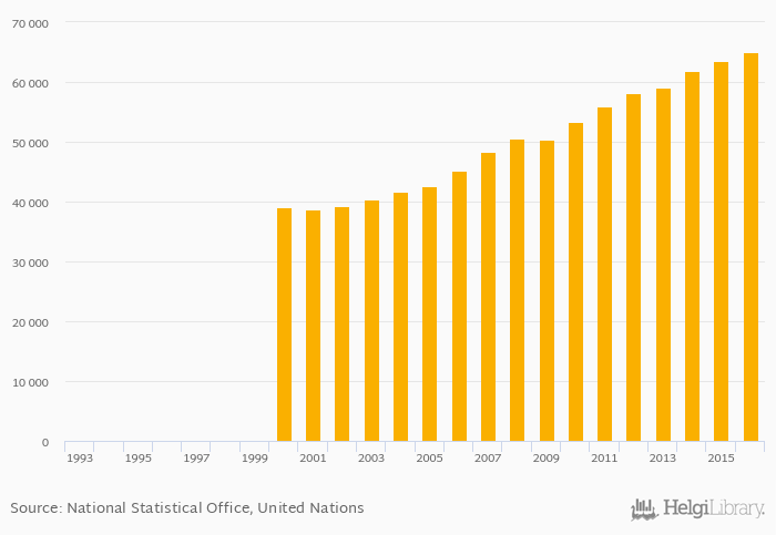 Railways goods transported in million of tonnes rose 2.29% to 65,012 Mt in the United Kingdom in 2016, according to the National Statistical Office.