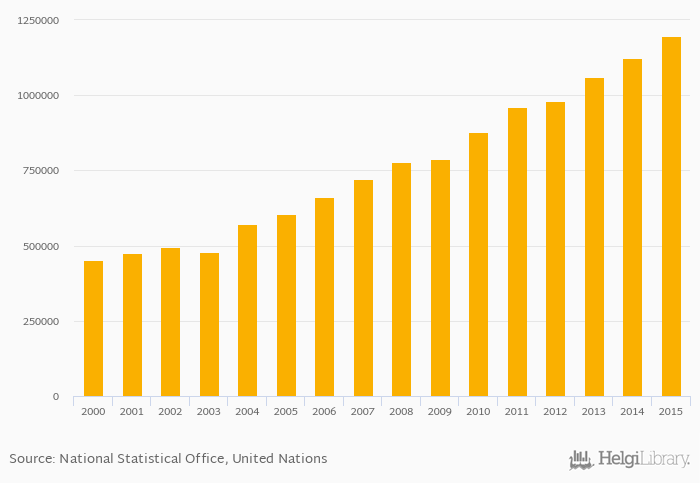 Railways goods transported in million of tonnes rose 6.39% to 1,196,060 Mt in China in 2015, according to the National Statistical Office.