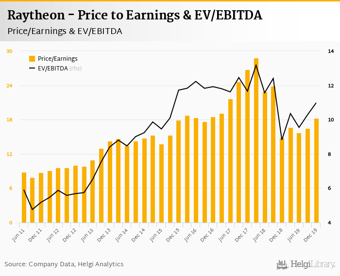 Raytheon stock traded at USD 219 per share at the end 4Q2019 translating into a market capitalization of USD 61,088 mil.