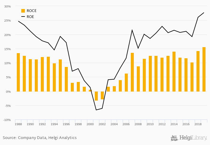 The result implies a return on equity of 27.7% and a return on invested capital of 15.7% in 2019. That is compared to an average of 22.9% and 12.8% over the last five years.