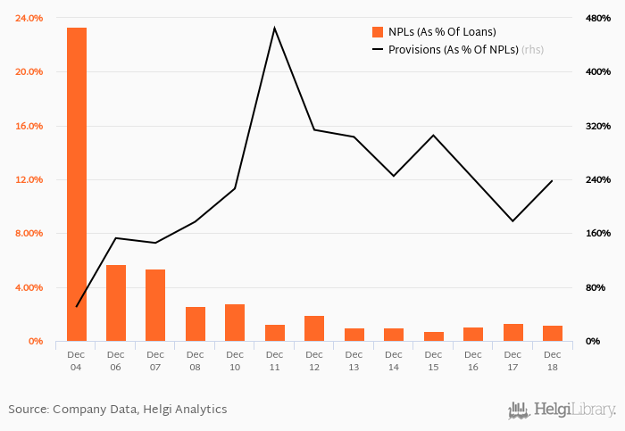Provision coverage amounted to 238% at the end of 2018-12-31, up from 178% compared to a year earlier.