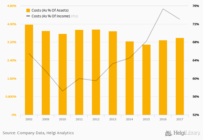 When compared to total assets, bank's cost amounted to 3.40% in 2017, up from 3.30% a year earlier.