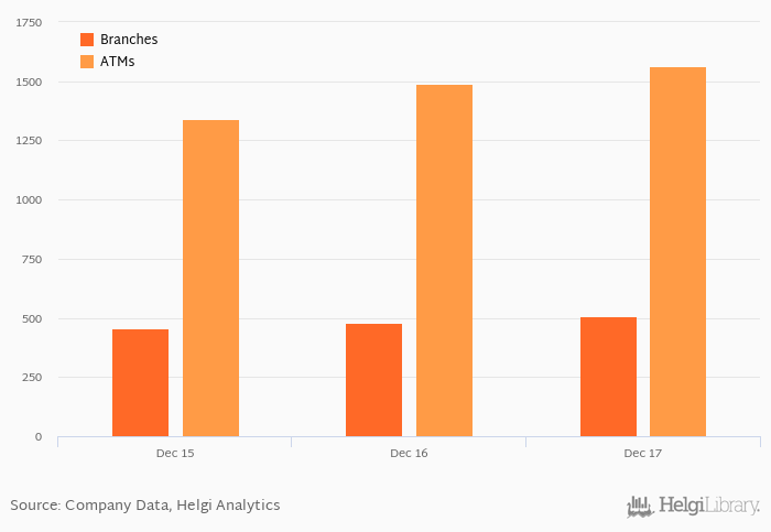 The bank operated a network of 508 branches and 1,562 ATMs at the end of 2017-12-31.