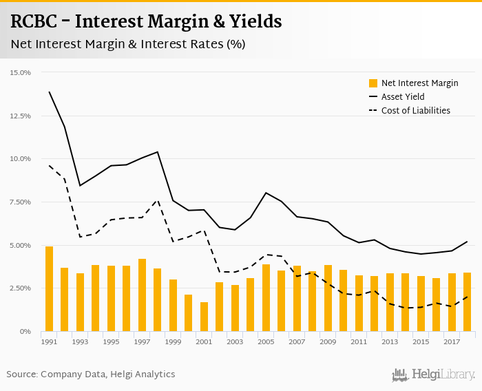 RCBC's net interest margin amounted to 3.45% in 2018, up from 3.40% compared to the previous year.