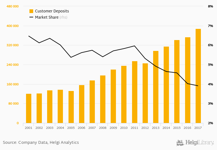 That's compared to a 4.05% market share the bank held in terms of total assets at the end of 2017.