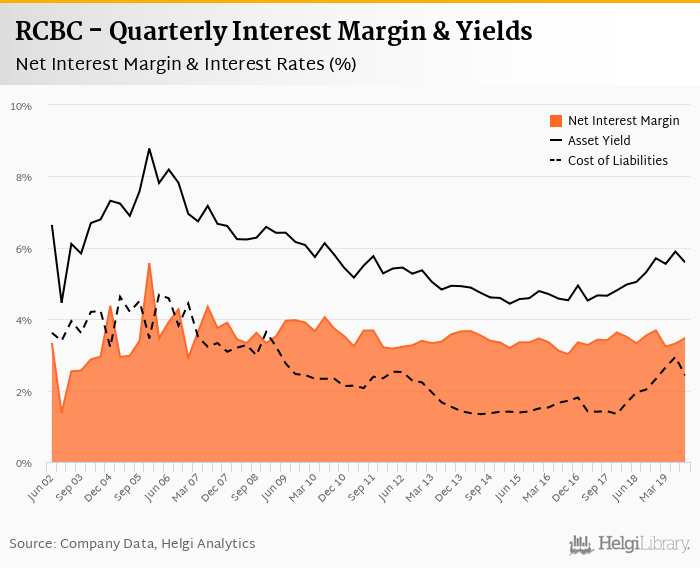 RCBC's net interest margin amounted to 3.47% in the third quarter of 2019, up from 3.32% when compared to the previous quarter.