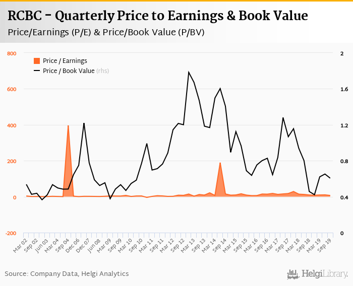 RCBC stock traded at PHP 26.5 per share at the end third quarter of 2019 implying a market capitalization of USD 1,151 mil.